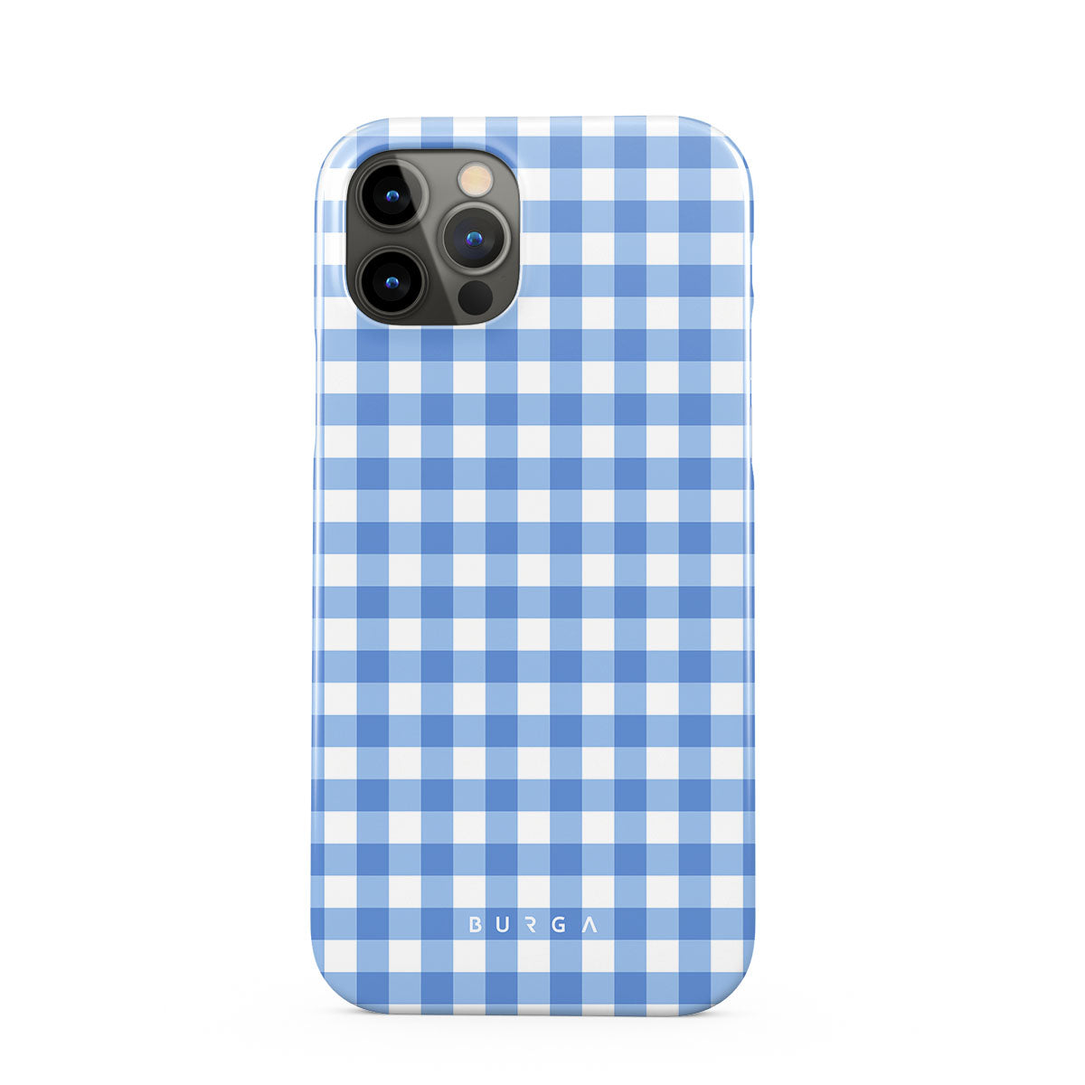 Crisp blue checks are your invitation to lay on the grass, look up at the sky, and find shapes in the clouds—simple joys that make any day lovely. That’s our Lovely Day iPhone 12 Pro Max phone case design.
