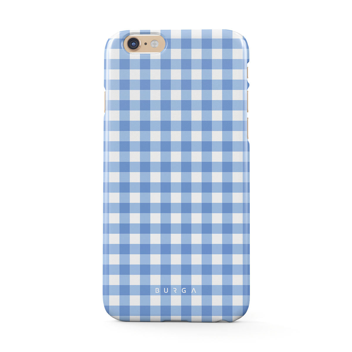 Crisp blue checks are your invitation to lay on the grass, look up at the sky, and find shapes in the clouds—simple joys that make any day lovely. That’s our Lovely Day iPhone 6 / 6S phone case design.