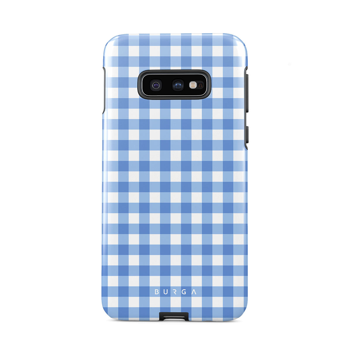 Crisp blue checks are your invitation to lay on the grass, look up at the sky, and find shapes in the clouds—simple joys that make any day lovely. That’s our Lovely Day Samsung Galaxy S10E phone case design.