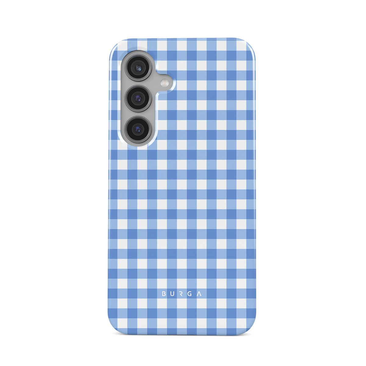 Crisp blue checks are your invitation to lay on the grass, look up at the sky, and find shapes in the clouds—simple joys that make any day lovely. That’s our Lovely Day Samsung Galaxy S24 phone case design.