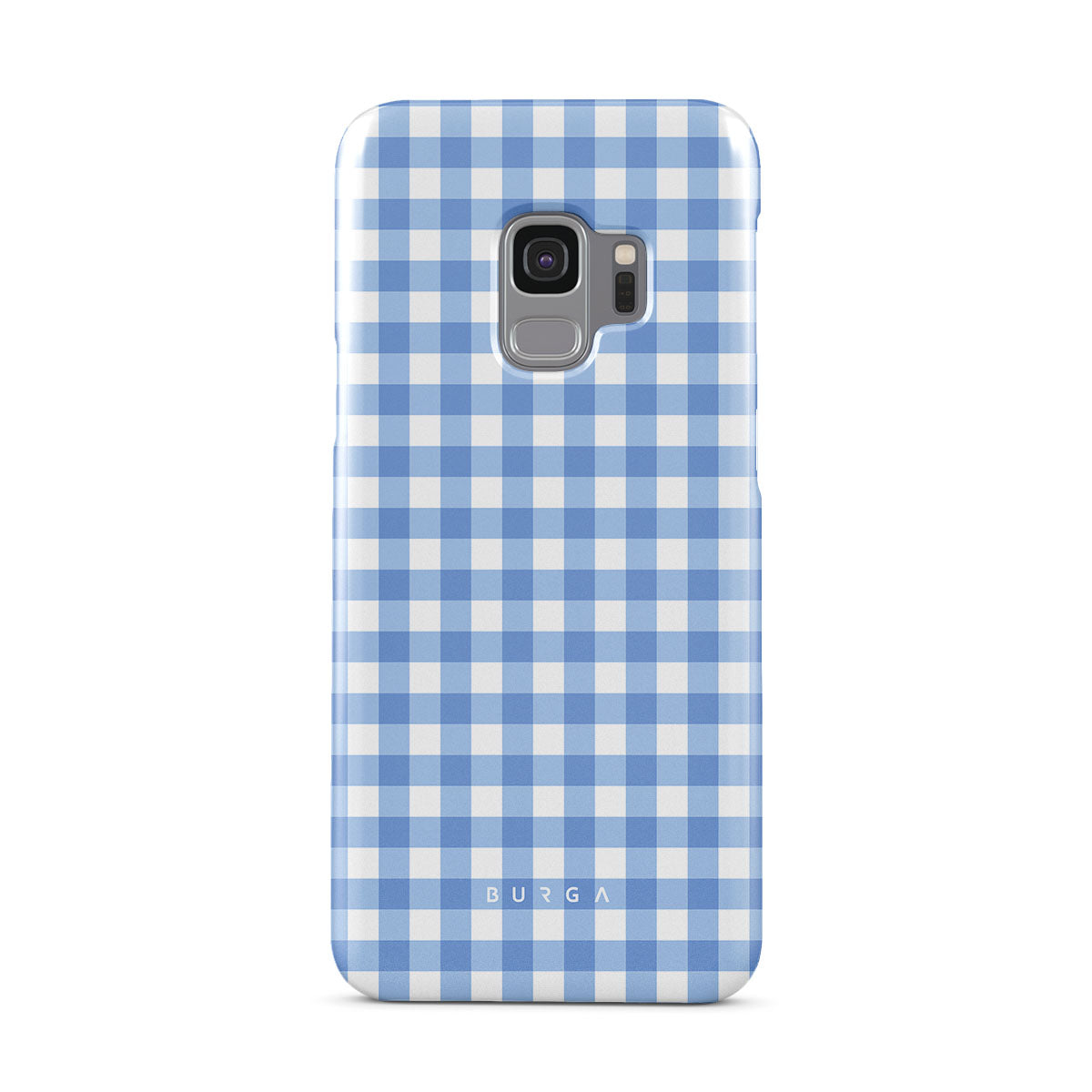Crisp blue checks are your invitation to lay on the grass, look up at the sky, and find shapes in the clouds—simple joys that make any day lovely. That’s our Lovely Day Samsung Galaxy S9 phone case design.