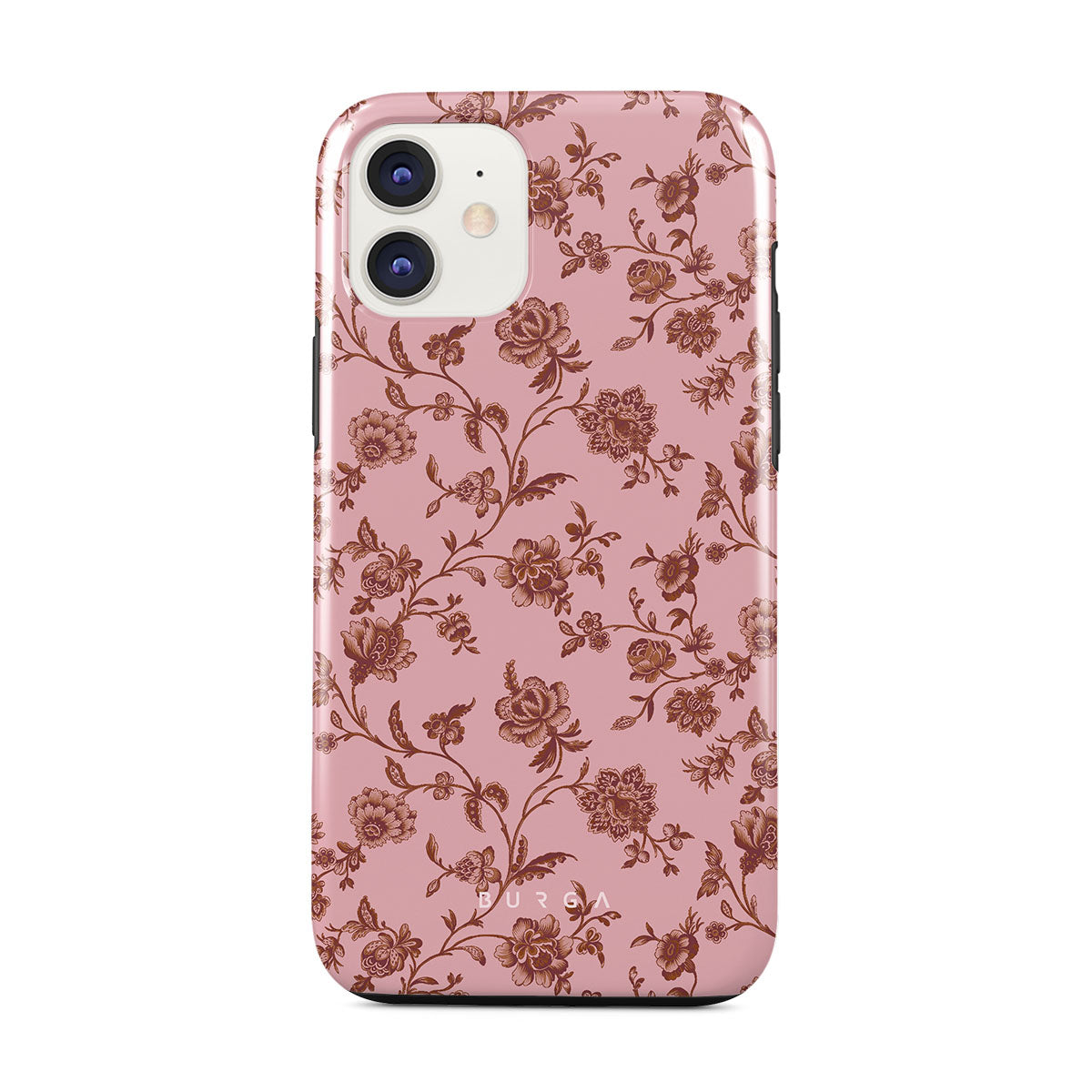The Lover iPhone 11 phone case design: because you're a Lover, not a fighter. Delicate floral motifs across a soft pink background capture the essence of timeless beauty and rustic elegance. Perfect for modern-day cowgirls with a vintage heart.