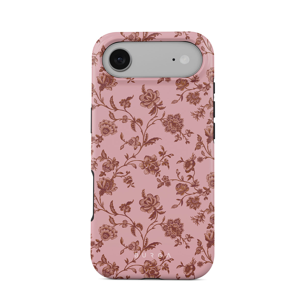 The Lover iPhone Air phone case design: because you're a Lover, not a fighter. Delicate floral motifs across a soft pink background capture the essence of timeless beauty and rustic elegance. Perfect for modern-day cowgirls with a vintage heart.