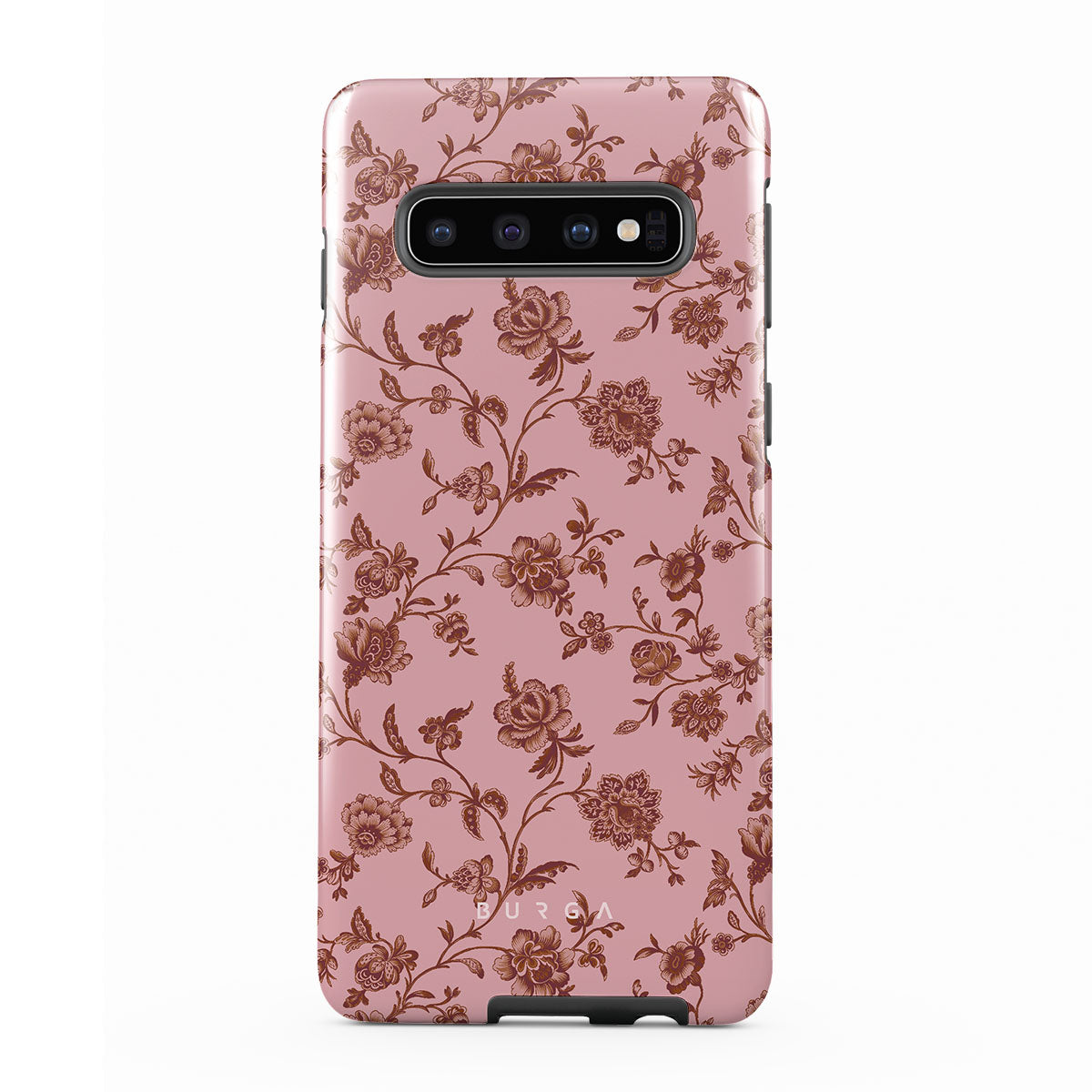 The Lover Samsung Galaxy S10 4G phone case design: because you're a Lover, not a fighter. Delicate floral motifs across a soft pink background capture the essence of timeless beauty and rustic elegance. Perfect for modern-day cowgirls with a vintage heart.