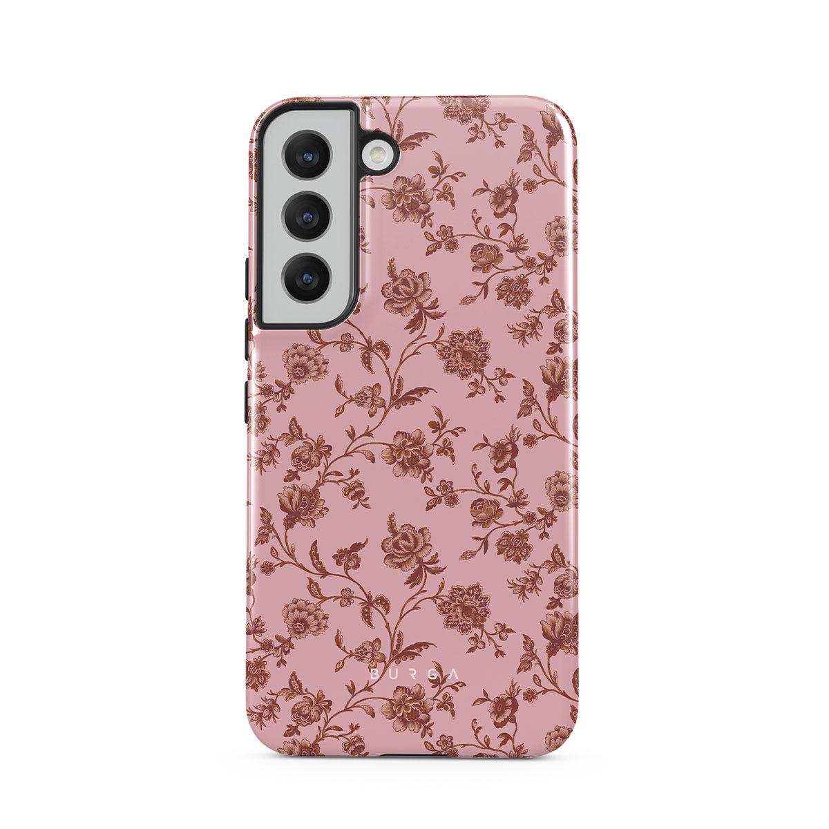 The Lover Samsung Galaxy S22 phone case design: because you're a Lover, not a fighter. Delicate floral motifs across a soft pink background capture the essence of timeless beauty and rustic elegance. Perfect for modern-day cowgirls with a vintage heart.
