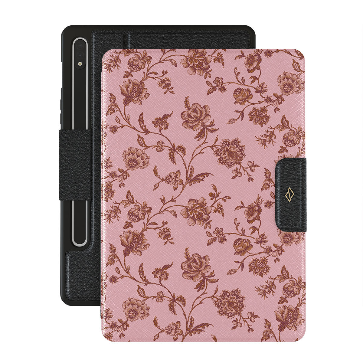 The Lover Samsung Galaxy Tab S10+ folio case design: because you're a Lover, not a fighter. Delicate floral motifs across a soft pink background capture the essence of timeless beauty and rustic elegance. Perfect for modern-day cowgirls with a vintage heart.