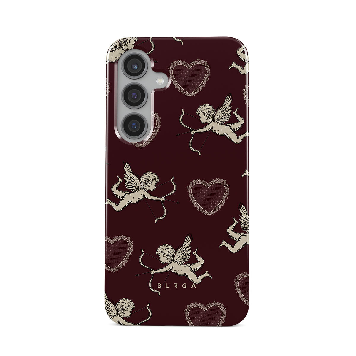 This Samsung Galaxy S24 FE phone case design captures the dizzy rush of falling in love—the playful flutter of Cupids and the steady beat of crimson hearts. Lovestruck is a celebration of passion’s first spark, that wild, uncontainable energy that makes your heart race and your soul sing.