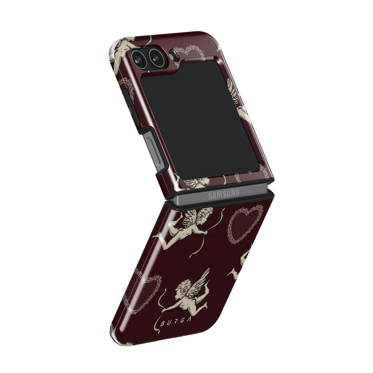 This Samsung Galaxy Z Flip 5 phone case design captures the dizzy rush of falling in love—the playful flutter of Cupids and the steady beat of crimson hearts. Lovestruck is a celebration of passion’s first spark, that wild, uncontainable energy that makes your heart race and your soul sing.