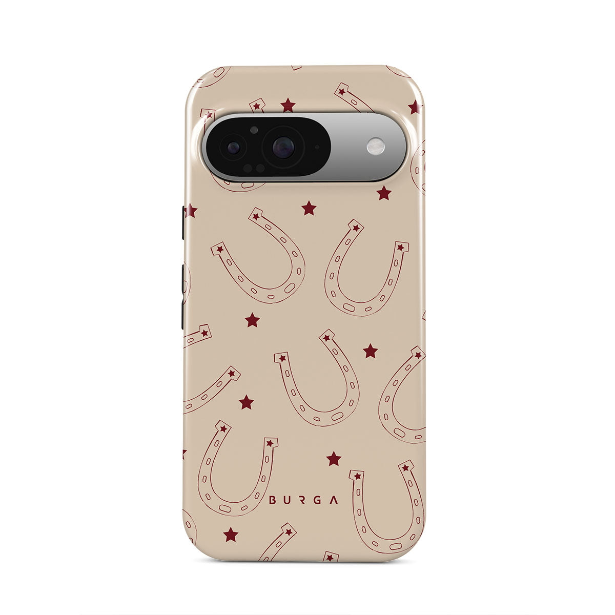 Horseshoes for luck, stars for style. Keep fortune on your side with our Lucky Charm Google Pixel 9 phone case. This design is a playful take on traditional symbols of luck. The earthy tones make it a versatile accessory for any western-inspired outfit—and not only.