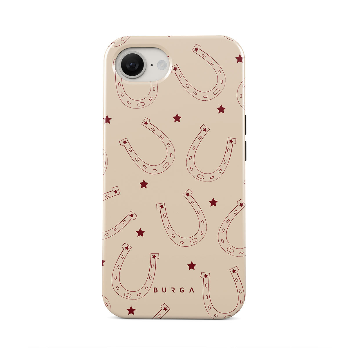 Horseshoes for luck, stars for style. Keep fortune on your side with our Lucky Charm iPhone 16e phone case. This design is a playful take on traditional symbols of luck. The earthy tones make it a versatile accessory for any western-inspired outfit—and not only.