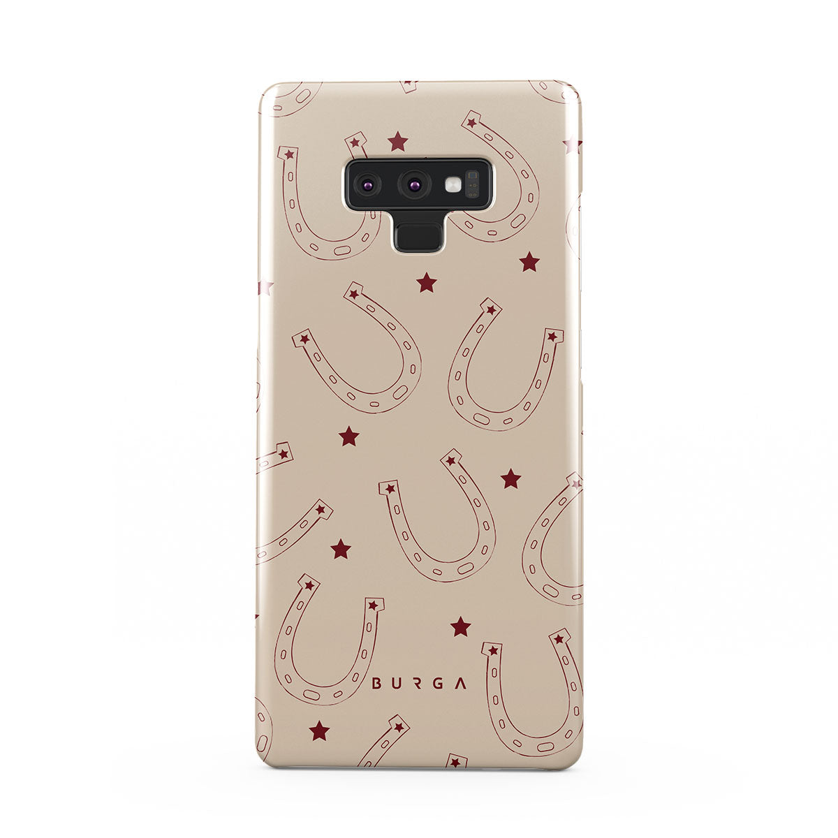 Horseshoes for luck, stars for style. Keep fortune on your side with our Lucky Charm Samsung Galaxy Note 9 phone case. This design is a playful take on traditional symbols of luck. The earthy tones make it a versatile accessory for any western-inspired outfit—and not only.