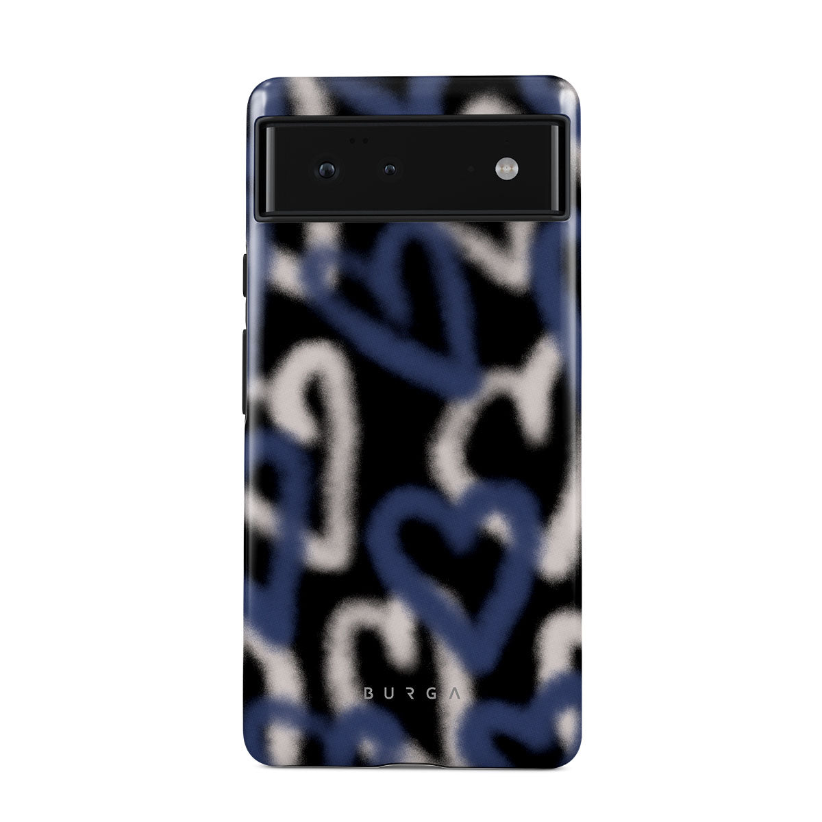 The Lucky You Google Pixel 6a phone case captures the raw, unfiltered pulse of street art. Graffiti hearts in striking blue and white stand out against a black background, their edges softly faded. It’s a design that speaks to the restless who find beauty in chaos and dare to be different.