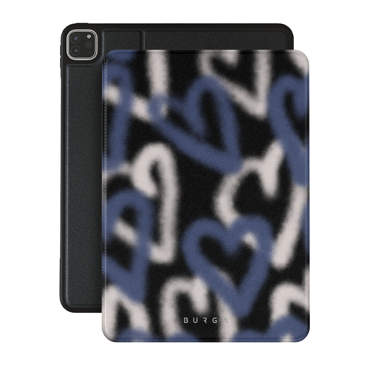 The Lucky You iPad Pro 11 (4th/3rd Gen) folio case captures the raw, unfiltered pulse of street art. Graffiti hearts in striking blue and white stand out against a black background, their edges softly faded. It’s a design that speaks to the restless who find beauty in chaos and dare to be different.
