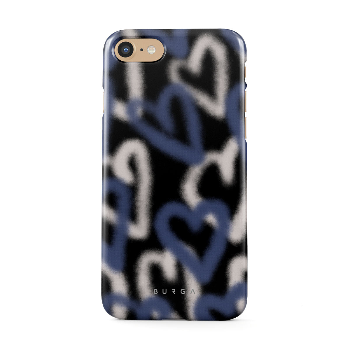 The Lucky You iPhone SE (2022) phone case captures the raw, unfiltered pulse of street art. Graffiti hearts in striking blue and white stand out against a black background, their edges softly faded. It’s a design that speaks to the restless who find beauty in chaos and dare to be different.
