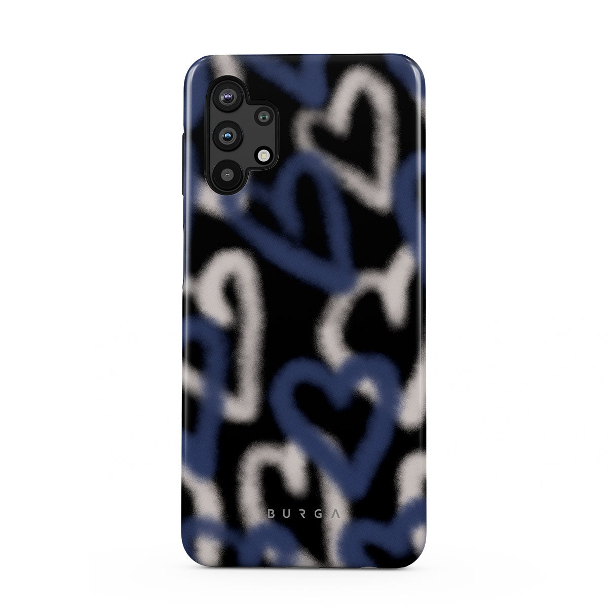 The Lucky You Samsung Galaxy A32 5G phone case captures the raw, unfiltered pulse of street art. Graffiti hearts in striking blue and white stand out against a black background, their edges softly faded. It’s a design that speaks to the restless who find beauty in chaos and dare to be different.