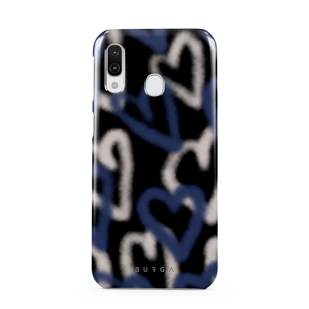 The Lucky You Samsung Galaxy A40 phone case captures the raw, unfiltered pulse of street art. Graffiti hearts in striking blue and white stand out against a black background, their edges softly faded. It’s a design that speaks to the restless who find beauty in chaos and dare to be different.