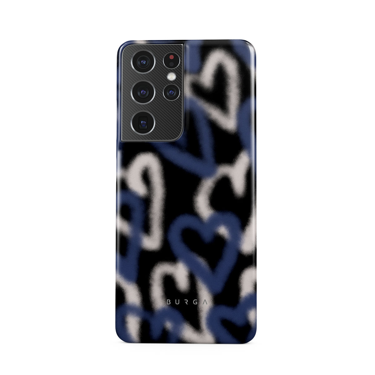 The Lucky You Samsung Galaxy S21 Ultra phone case captures the raw, unfiltered pulse of street art. Graffiti hearts in striking blue and white stand out against a black background, their edges softly faded. It’s a design that speaks to the restless who find beauty in chaos and dare to be different.