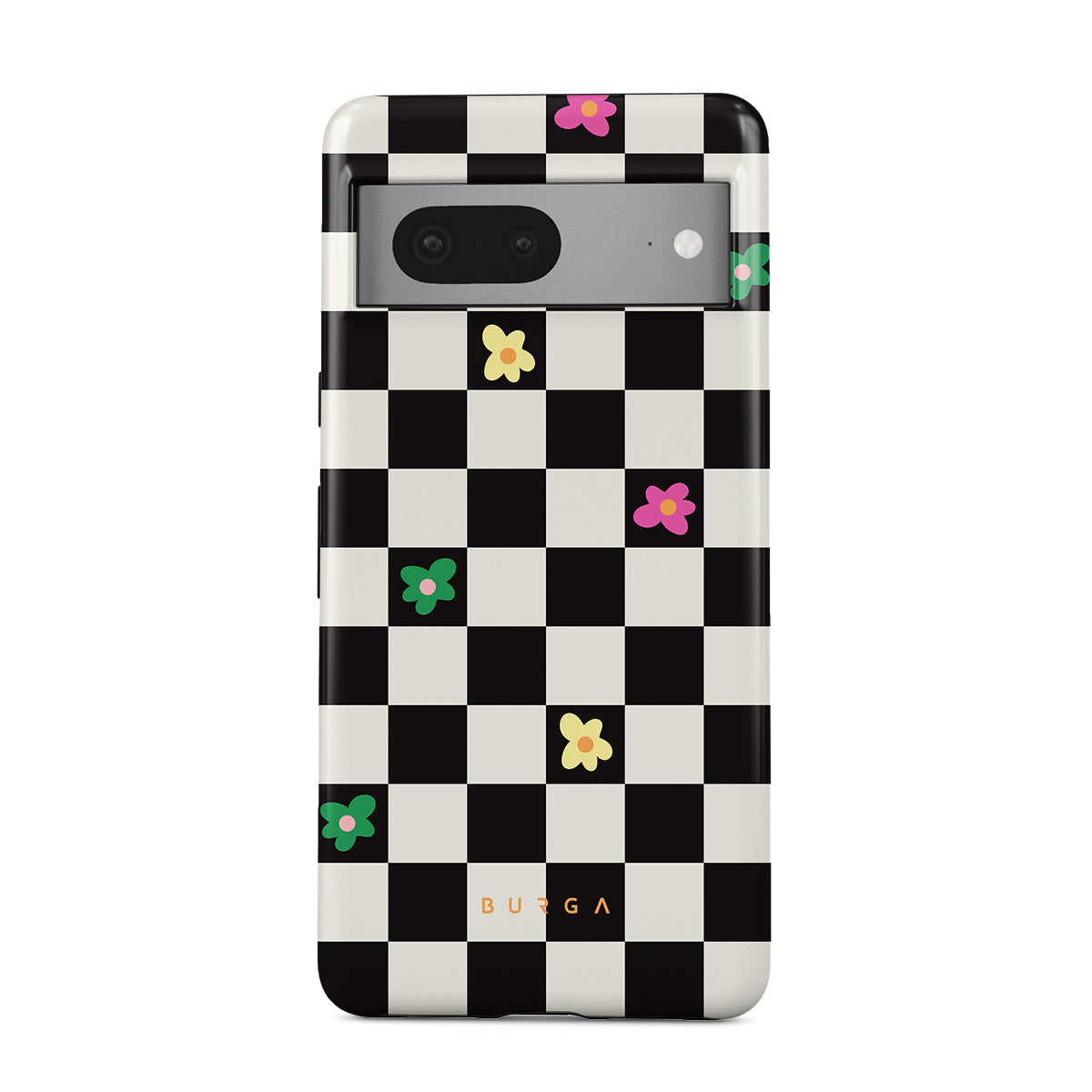 Take time to relax with our Lunch Break - Google Pixel 7 phone case. The playful addition of colorful retro flowers to the classical black and white checkered pattern will add that extra pop of color. It will bring that much-needed *oomph* to your phone. With this playful design, you can keep your phone cute and protected!