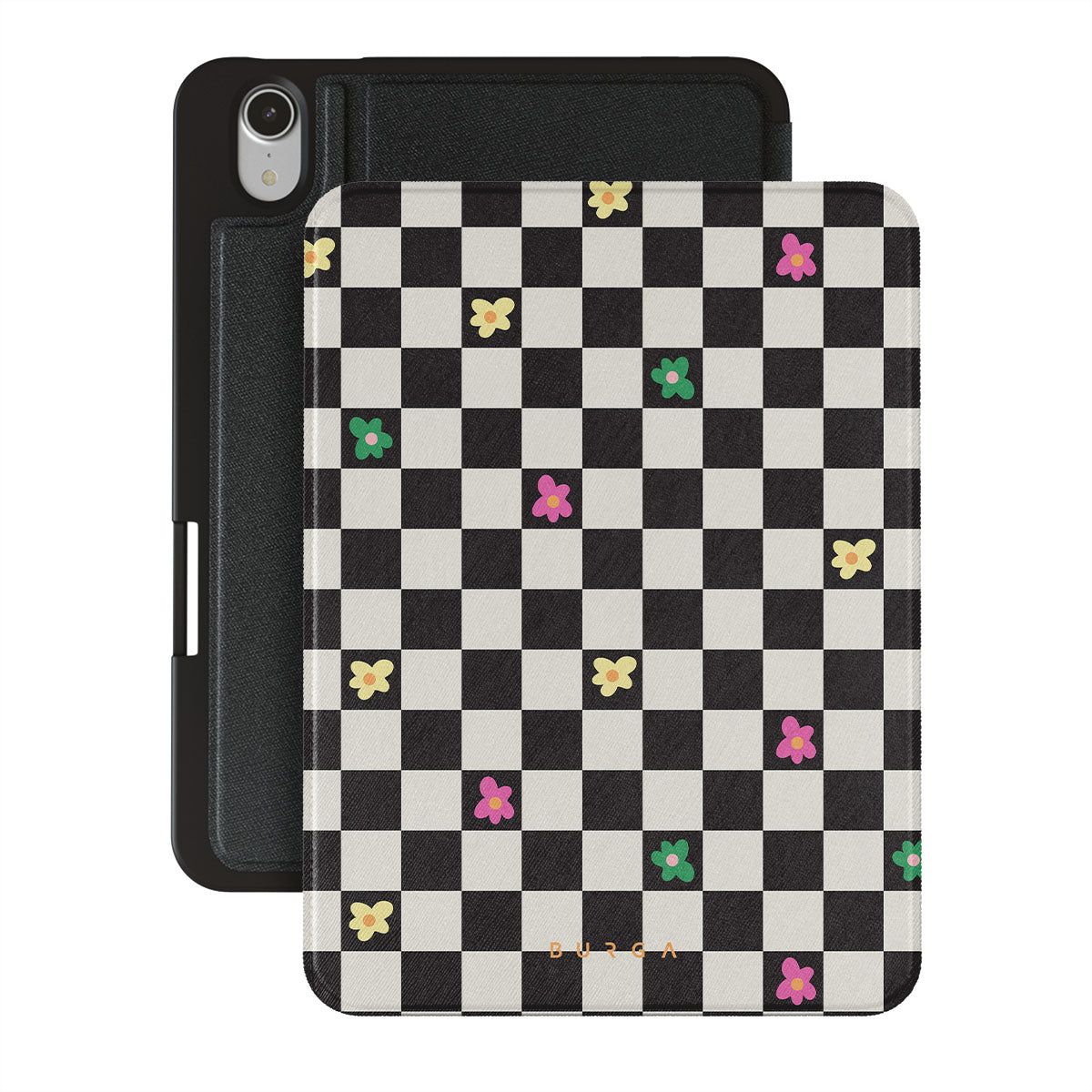 Take time to relax with our Lunch Break - iPad Mini 8.3 (A17 Pro/6th Gen) 2021 folio case. The playful addition of colorful retro flowers to the classical black and white checkered pattern will add that extra pop of color. It will bring that much-needed *oomph* to your iPad. With this playful design, you can keep your iPad cute and protected!