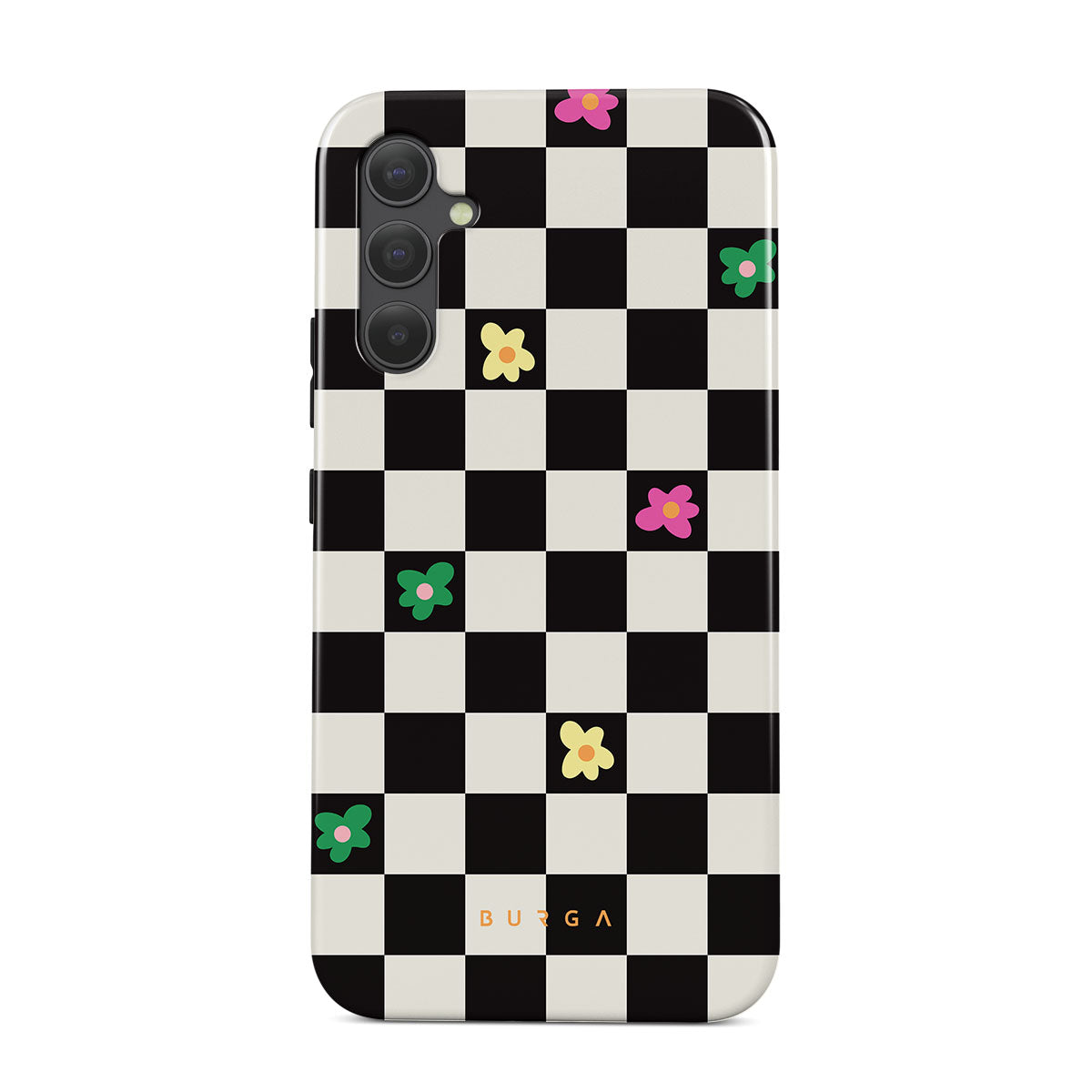 Take time to relax with our Lunch Break - Samsung Galaxy A34 phone case. The playful addition of colorful retro flowers to the classical black and white checkered pattern will add that extra pop of color. It will bring that much-needed *oomph* to your phone. With this playful design, you can keep your phone cute and protected!