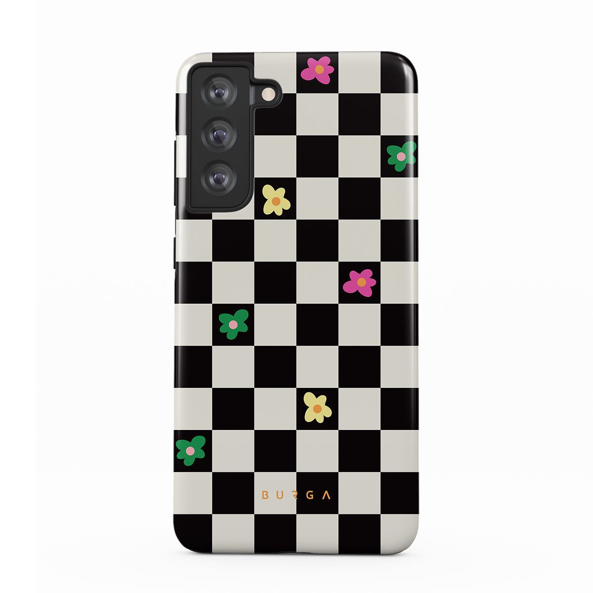 Take time to relax with our Lunch Break - Samsung Galaxy S21 FE phone case. The playful addition of colorful retro flowers to the classical black and white checkered pattern will add that extra pop of color. It will bring that much-needed *oomph* to your phone. With this playful design, you can keep your phone cute and protected!