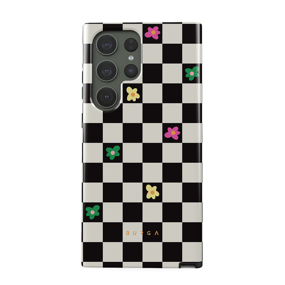 Take time to relax with our Lunch Break - Samsung Galaxy S23 Ultra phone case. The playful addition of colorful retro flowers to the classical black and white checkered pattern will add that extra pop of color. It will bring that much-needed *oomph* to your phone. With this playful design, you can keep your phone cute and protected!