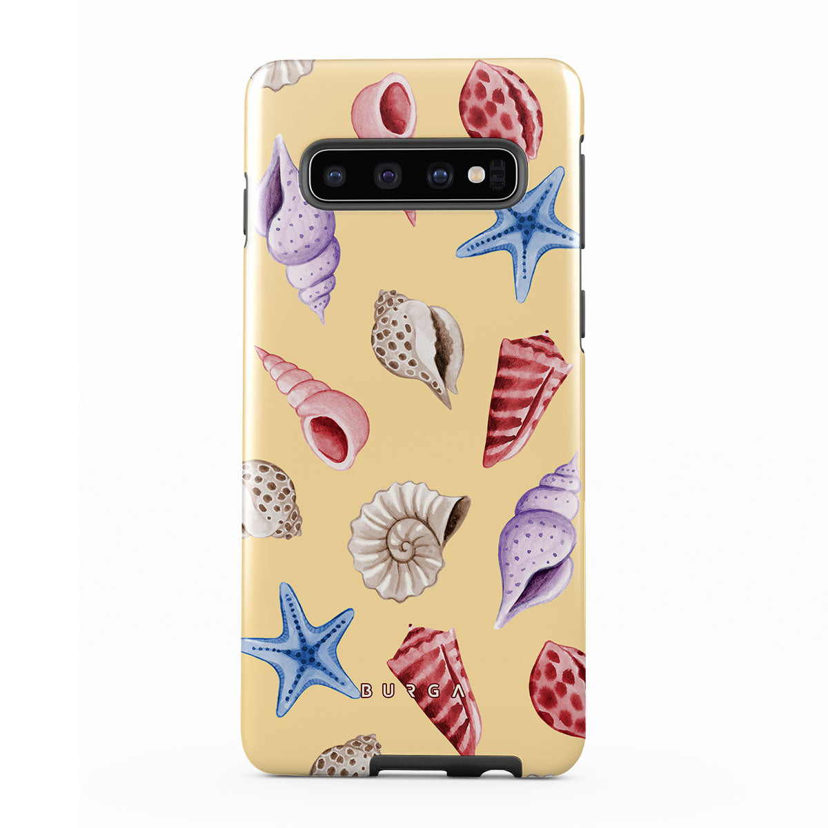 Seashells and starfish, the perfect ocean-inspired charm. This Samsung Galaxy S10 4G phone case design is catching eyes and stealing hearts.