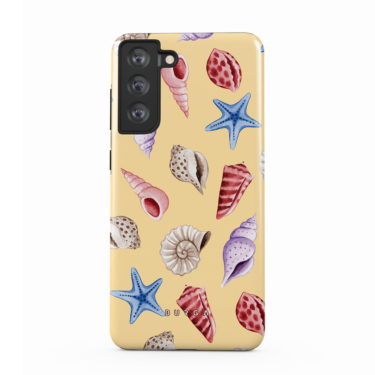 Seashells and starfish, the perfect ocean-inspired charm. This Samsung Galaxy S21 FE phone case design is catching eyes and stealing hearts.