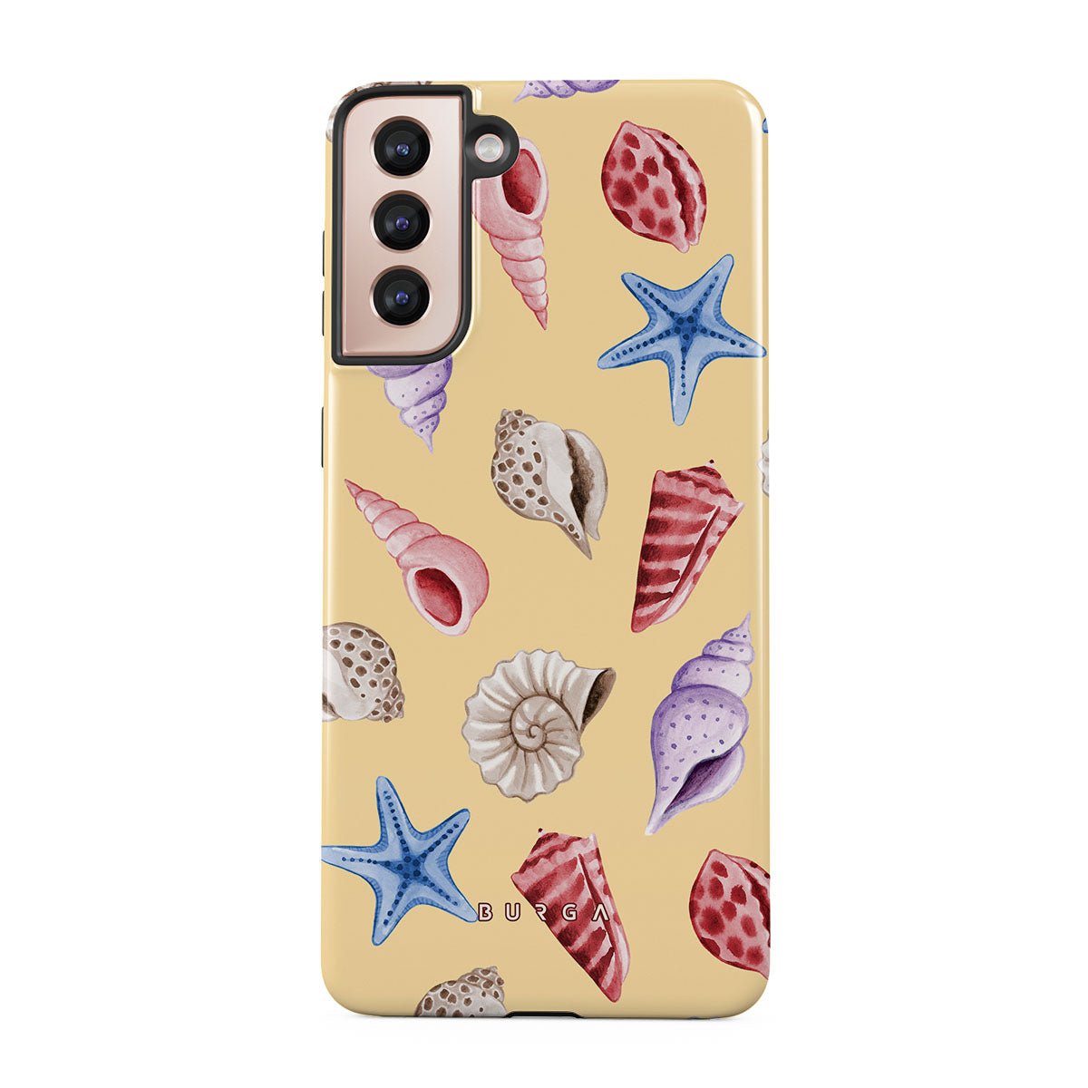 Seashells and starfish, the perfect ocean-inspired charm. This Samsung Galaxy S21 Plus phone case design is catching eyes and stealing hearts.