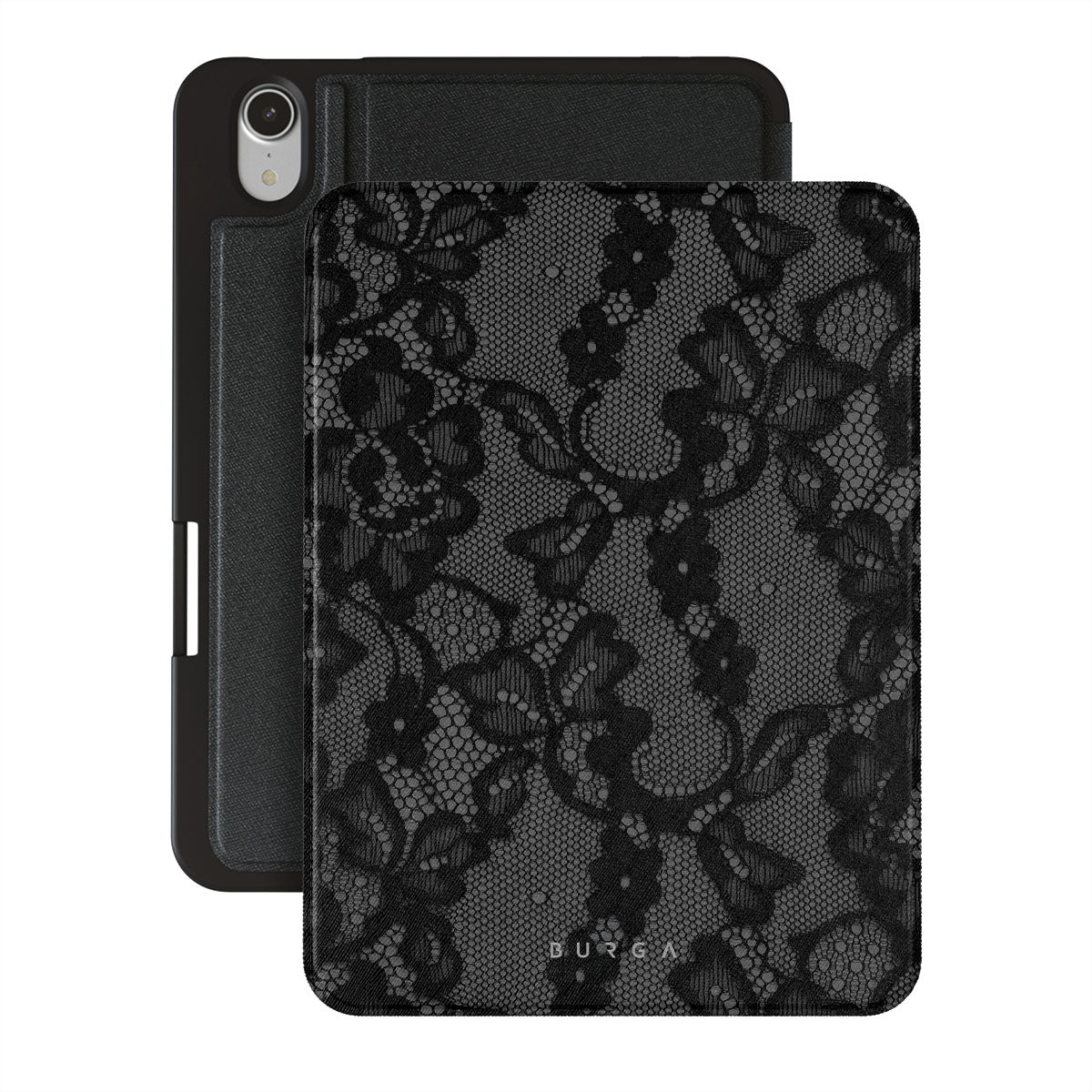 Inspired by the intricate patterns of lace gowns, our Magnetic design is perfect for those with a love for the drama and romance of old Hollywood. This iPad Mini 8.3 (A17 Pro/6th Gen) 2021 folio caseis a statement of effortless, mysterious femininity, turning you into the main character where you go.