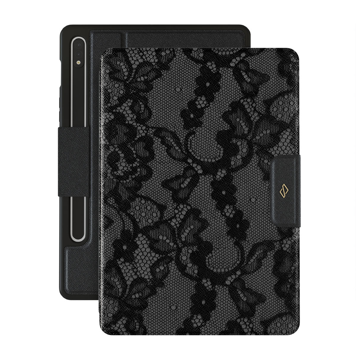 Inspired by the intricate patterns of lace gowns, our Magnetic design is perfect for those with a love for the drama and romance of old Hollywood. This Samsung Galaxy Tab S8/S7 folio caseis a statement of effortless, mysterious femininity, turning you into the main character where you go.