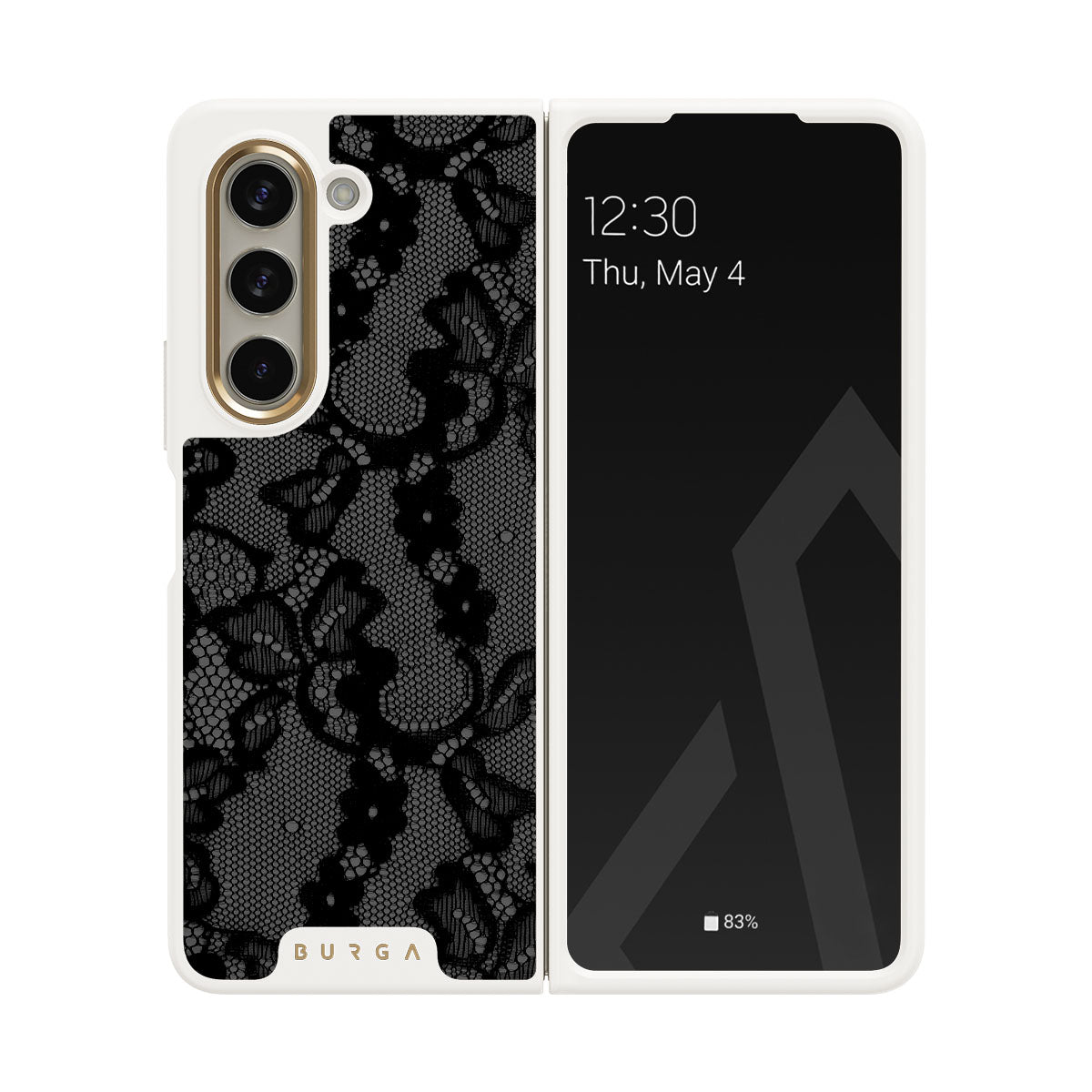 Inspired by the intricate patterns of lace gowns, our Magnetic design is perfect for those with a love for the drama and romance of old Hollywood. This Samsung Galaxy Z Fold 5 phone case is a statement of effortless, mysterious femininity, turning you into the main character where you go.
