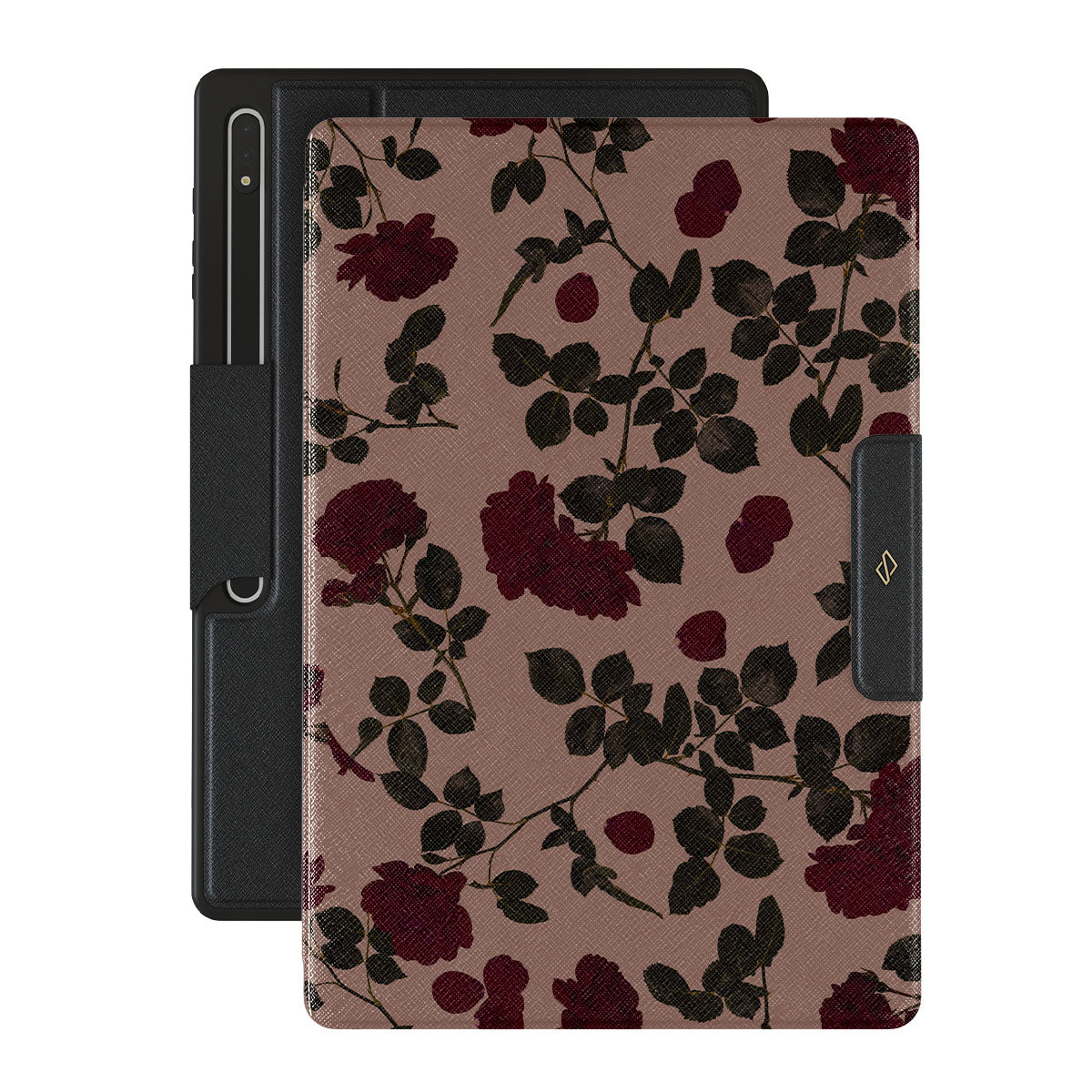 Live out loud as the Main Character with this elegantly bold design that promises a new daily adventure. With deep, rich roses against a pink background, this Samsung Galaxy Tab S8 Ultra folio case design is crafted for the muse in you.