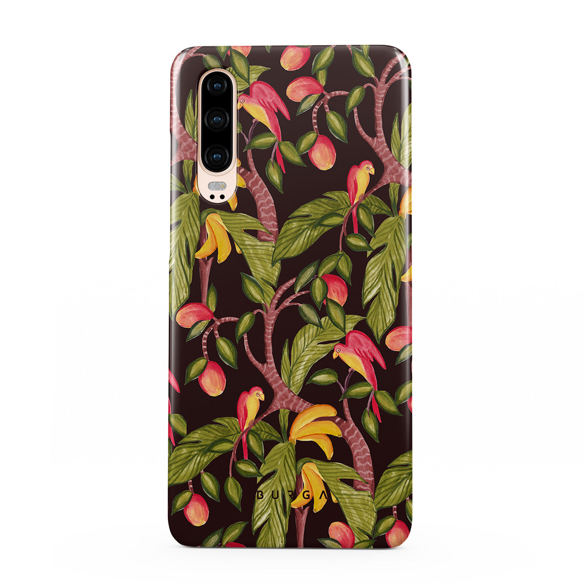 A lush botanical fantasy where ripe mangoes hang like forbidden fruit. Deep greens and juicy oranges pull you into a tropical escape. If this Huawei P30 phone case design had a voice, it would purr.