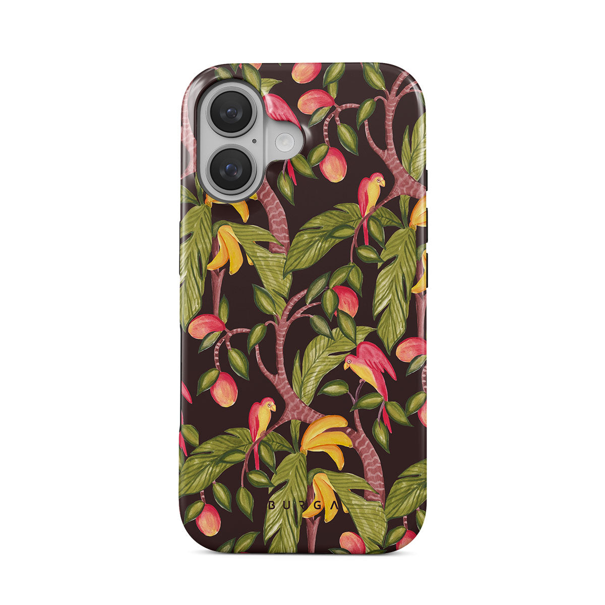 A lush botanical fantasy where ripe mangoes hang like forbidden fruit. Deep greens and juicy oranges pull you into a tropical escape. If this iPhone 16 phone case design had a voice, it would purr.