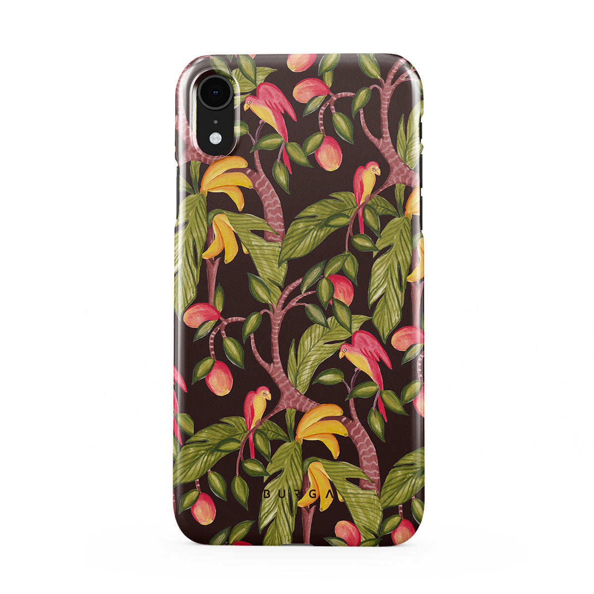 A lush botanical fantasy where ripe mangoes hang like forbidden fruit. Deep greens and juicy oranges pull you into a tropical escape. If this iPhone XR phone case design had a voice, it would purr.