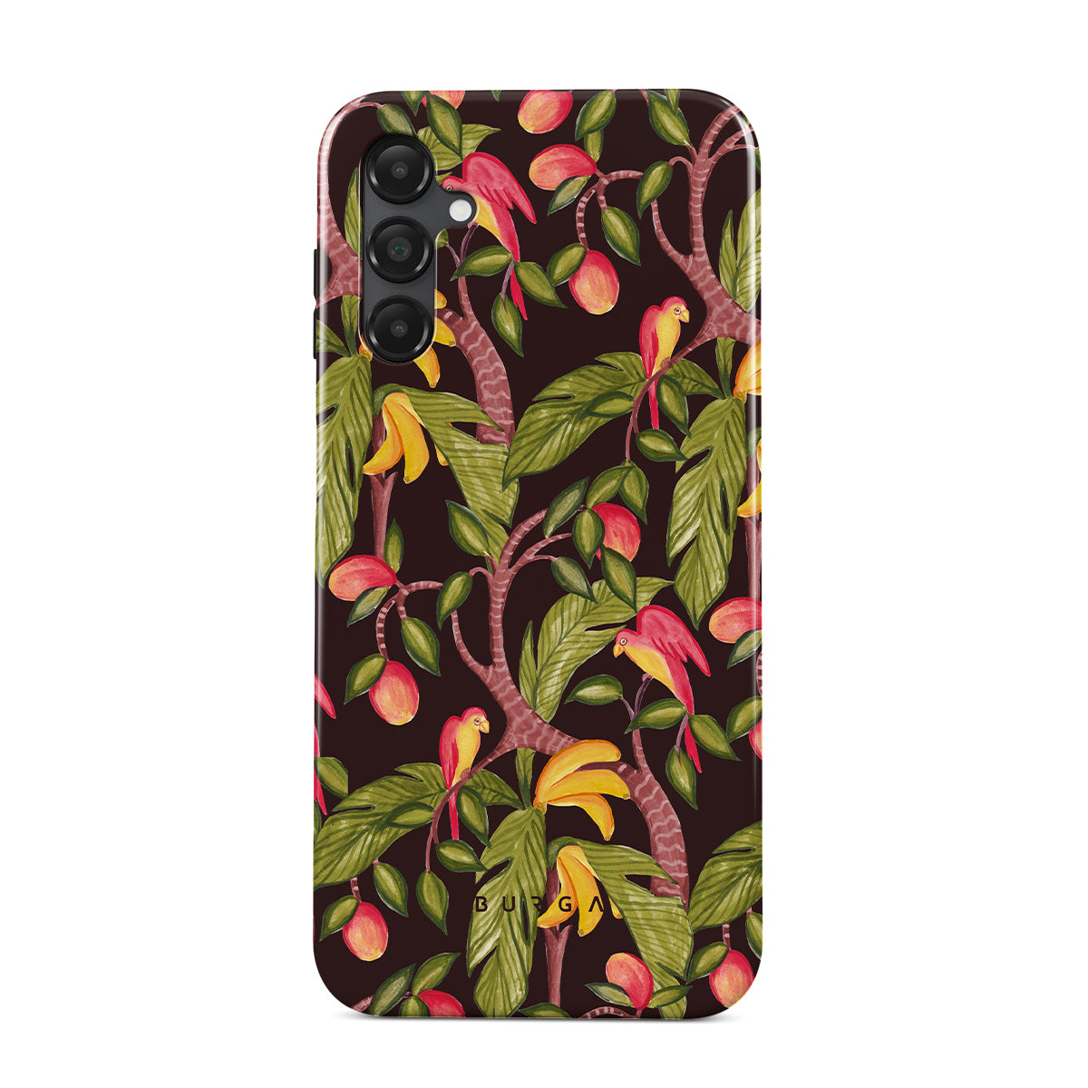 A lush botanical fantasy where ripe mangoes hang like forbidden fruit. Deep greens and juicy oranges pull you into a tropical escape. If this Samsung Galaxy A14 5G phone case design had a voice, it would purr.