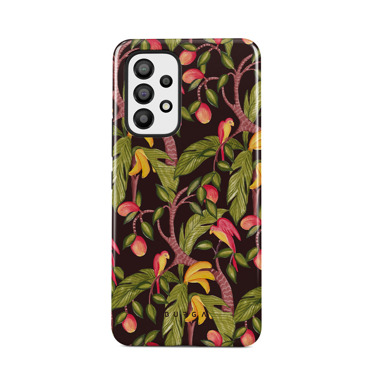 A lush botanical fantasy where ripe mangoes hang like forbidden fruit. Deep greens and juicy oranges pull you into a tropical escape. If this Samsung Galaxy A25 phone case design had a voice, it would purr.