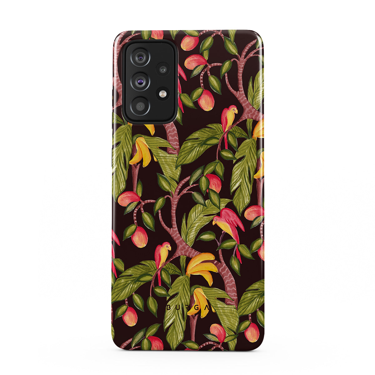 A lush botanical fantasy where ripe mangoes hang like forbidden fruit. Deep greens and juicy oranges pull you into a tropical escape. If this Samsung Galaxy A52 / A52S 4G / 5G phone case design had a voice, it would purr.