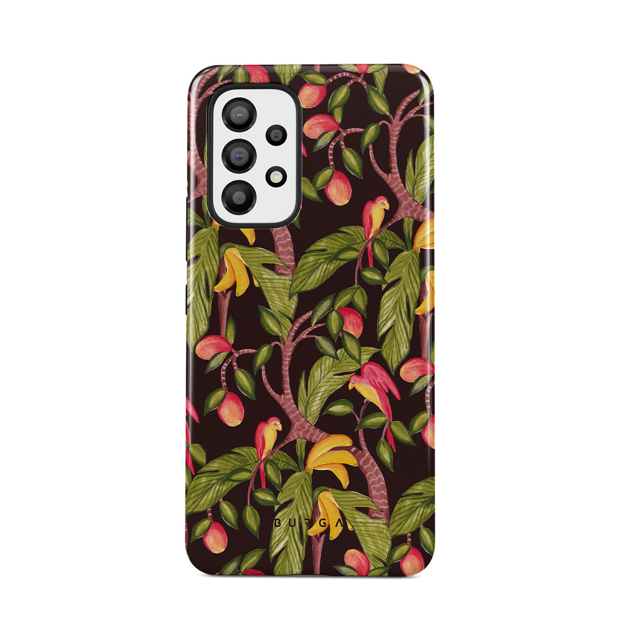 A lush botanical fantasy where ripe mangoes hang like forbidden fruit. Deep greens and juicy oranges pull you into a tropical escape. If this Samsung Galaxy A53 phone case design had a voice, it would purr.