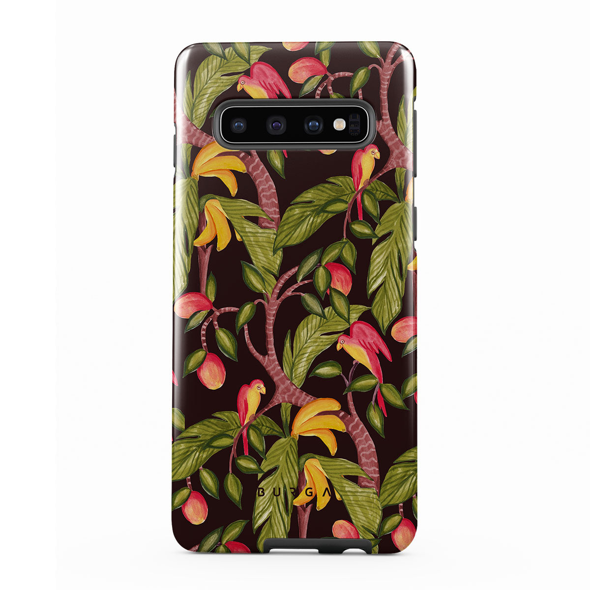 A lush botanical fantasy where ripe mangoes hang like forbidden fruit. Deep greens and juicy oranges pull you into a tropical escape. If this Samsung Galaxy S10 4G phone case design had a voice, it would purr.
