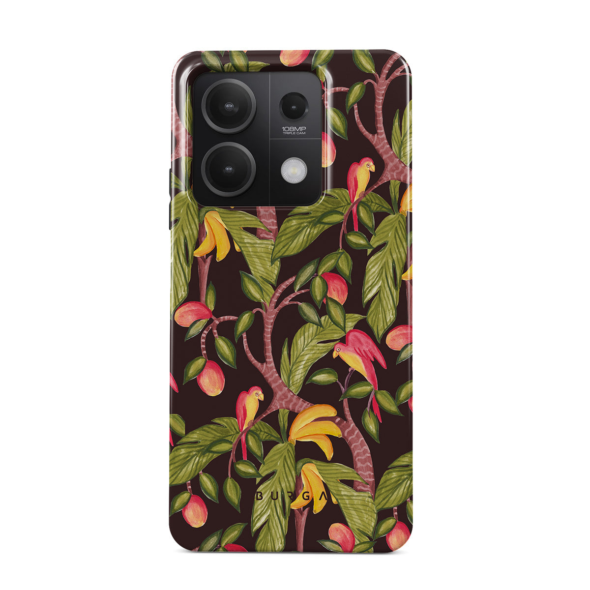 A lush botanical fantasy where ripe mangoes hang like forbidden fruit. Deep greens and juicy oranges pull you into a tropical escape. If this Xiaomi Redmi Note 13 5G phone case design had a voice, it would purr.