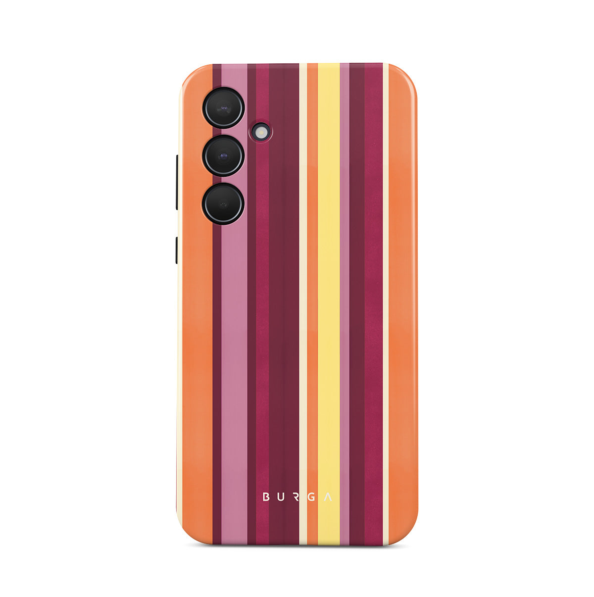 Like a hammock between two trees at golden hour. Stripes that sway gently between tropical and spiritual. This Samsung Galaxy A35 phone case design is made for the moments when doing nothing feels like doing everything.