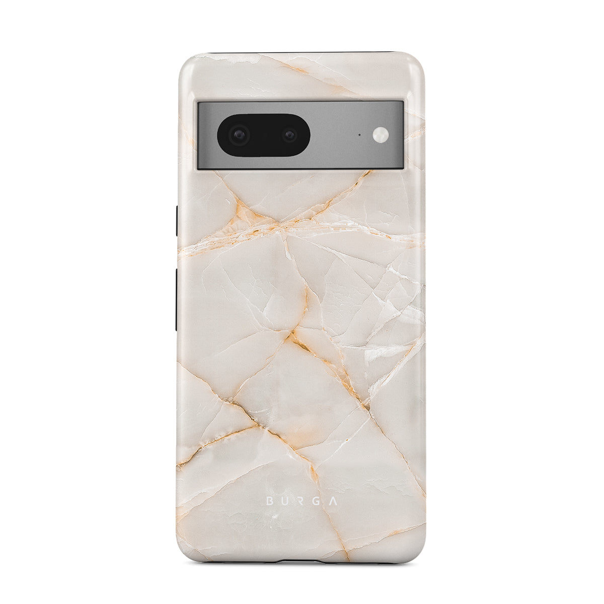 The Vanilla Sand Marble Google Pixel 7a phone case cover features a marble design with creamy canvas showcasing beautiful golden hues. The soft-toned case will add a touch of luxury to the device while protecting it from dangerous falls.