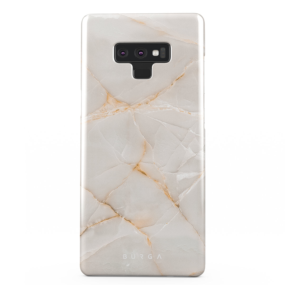 The Vanilla Sand Marble Samsung Galaxy Note 9 phone case cover features a marble design with creamy canvas showcasing beautiful golden hues. The soft-toned case will add a touch of luxury to the device while protecting it from dangerous falls.
