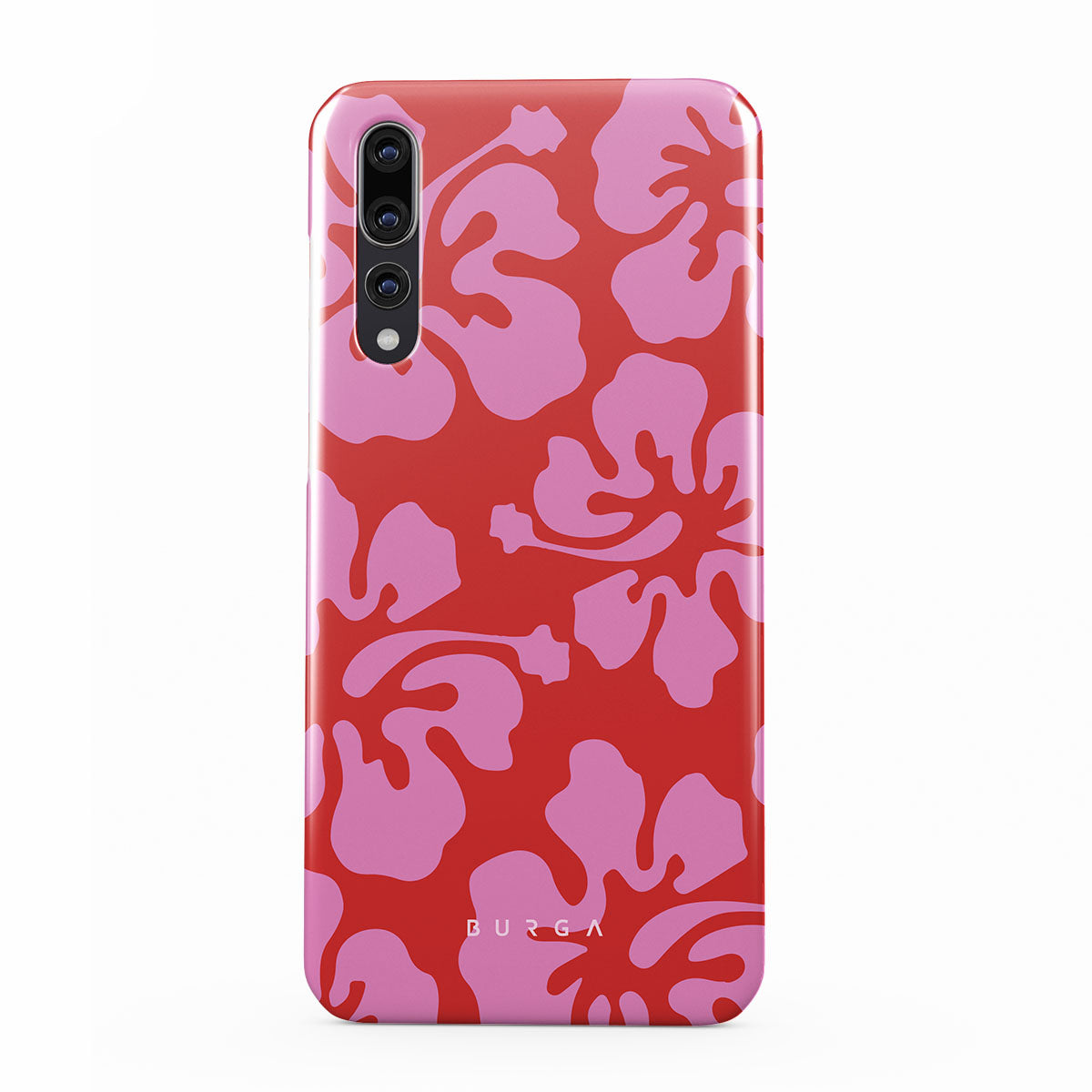 Dive into a sea of floral fantasy with Me Gustas Tu. Featuring oversized coral-toned blooms against a fiery backdrop, this Huawei P20 phone case design captures the wild heart of tropical flowers—perfect for those who want to carry a touch of exotic flair.