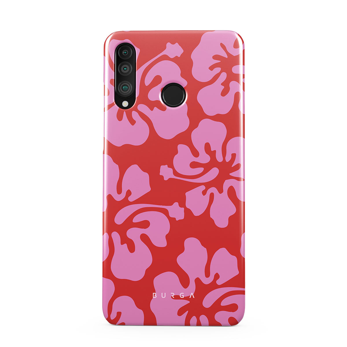 Dive into a sea of floral fantasy with Me Gustas Tu. Featuring oversized coral-toned blooms against a fiery backdrop, this Huawei P30 Lite phone case design captures the wild heart of tropical flowers—perfect for those who want to carry a touch of exotic flair.