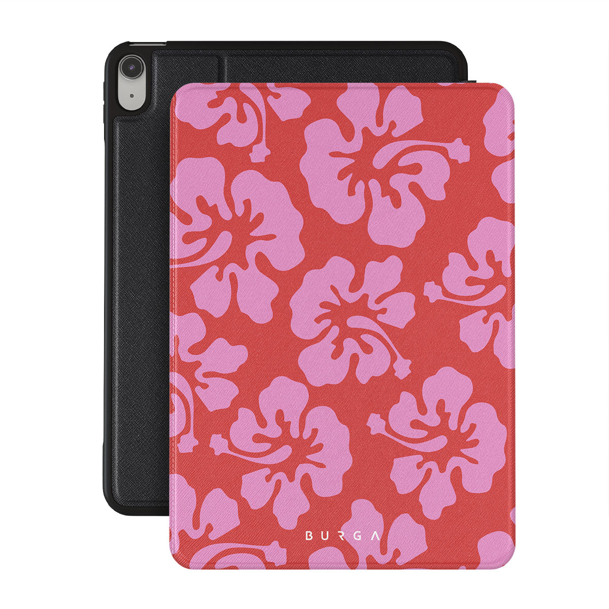 Dive into a sea of floral fantasy with Me Gustas Tu. Featuring oversized coral-toned blooms against a fiery backdrop, this iPad 10.9 (A16/10th Gen) folio case design captures the wild heart of tropical flowers—perfect for those who want to carry a touch of exotic flair.