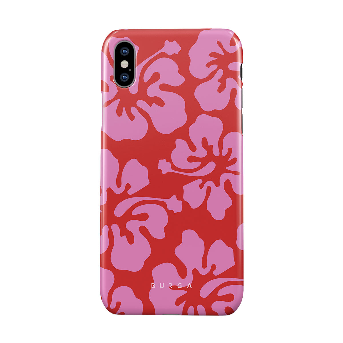Dive into a sea of floral fantasy with Me Gustas Tu. Featuring oversized coral-toned blooms against a fiery backdrop, this iPhone X / XS phone case design captures the wild heart of tropical flowers—perfect for those who want to carry a touch of exotic flair.