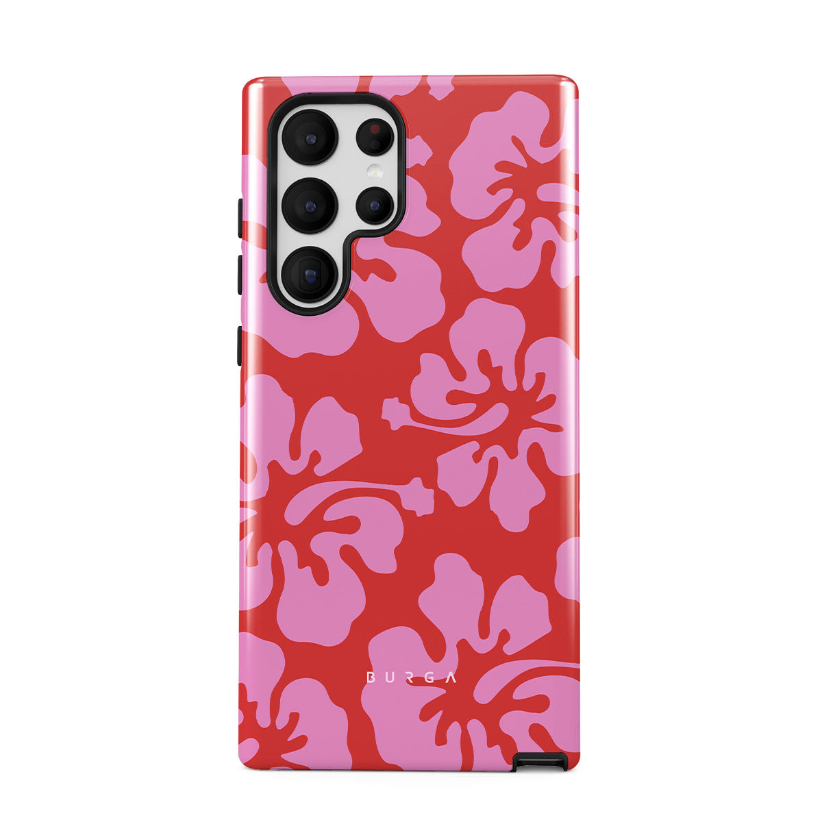 Dive into a sea of floral fantasy with Me Gustas Tu. Featuring oversized coral-toned blooms against a fiery backdrop, this Samsung Galaxy S22 Ultra phone case design captures the wild heart of tropical flowers—perfect for those who want to carry a touch of exotic flair.